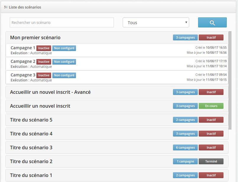 | Voici la liste des scénarios, composés de leurs campagnes. | ![]() |