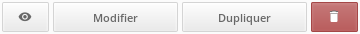 Le premier bouton vous permet de prévisualiser vos templates rapidement. Le deuxième bouton, Modifier, vous donne accès à l'outil d'édition de template, n'oubliez pas de sauvegarder votre template après modification grâce au bouton prévu à cette effet dans l'éditeur. Le bouton Dupliquer vous permet de faire une nouvelle copie du template concerné. La corbeille permet évidemment de supprimer le template définitivement.