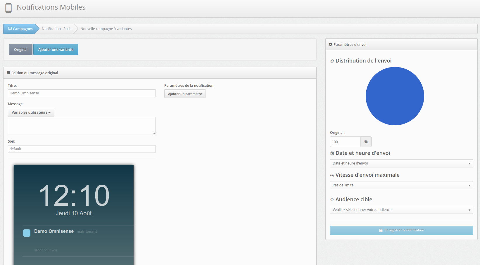 Grâce à Omnisense vous pouvez donc envoyer via une campagne, plusieurs push différents. L'intérêt est de pouvoir en étudier les statistiques et d'apprécier le succès de tel ou tel message afin d'affiner les futures campagnes.